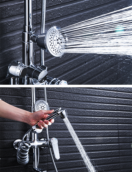 ②五功能出水:手持出水、頂噴出水、腰噴出水、噴槍出水、下出水,滿足不同需求。